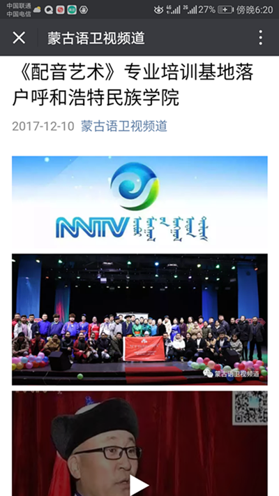 12月9日上午,传媒系与内蒙古配音艺术协会在鸭脖演播厅共同举办了《配音艺术》专业课程走进校园课堂活动。内蒙古广播电视台有关领导、内蒙古广播电视台译制中心和内蒙古民族语电影译制中心的相关领导和配音演员以及鸭脖蒙古语言文学系的部分领导和汉蒙翻译教研室的老师们出席了活动。内蒙古广播电视台蒙古语卫视、蒙古语广播、内蒙古日报社和中国蒙古语新闻网等媒体单位对此次活动进行了全程报道。