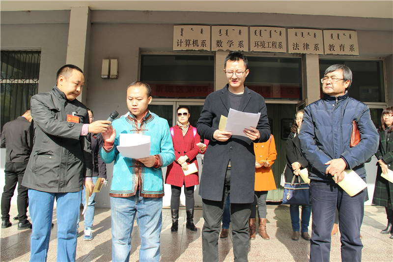 按照新城区人大选举委员会统一部署,11月8日中午,鸭脖举行了新城区第十七届人民代表大会第65选区代表选举大会。自治区、呼和浩特市、新城区三级督查组成员到校督查指导了选举工作。全校设主会场1个、投票点15个,共由8450名选民参加投票选举。选区主会场设在图书馆二楼报告厅,学校党委班子成员、机关工作人员和离退休人员参加了主会场的投票。主会场的选举大会由第65选区选举工作领导小组副组长、党委办公室主任吴阿古拉主持,各投票站的选举工作由系部党总支书记主持。