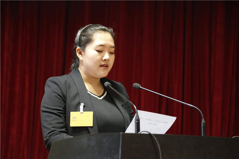 选区选举工作领导小组办公室成员包冬梅宣读《选举办法(草案)》