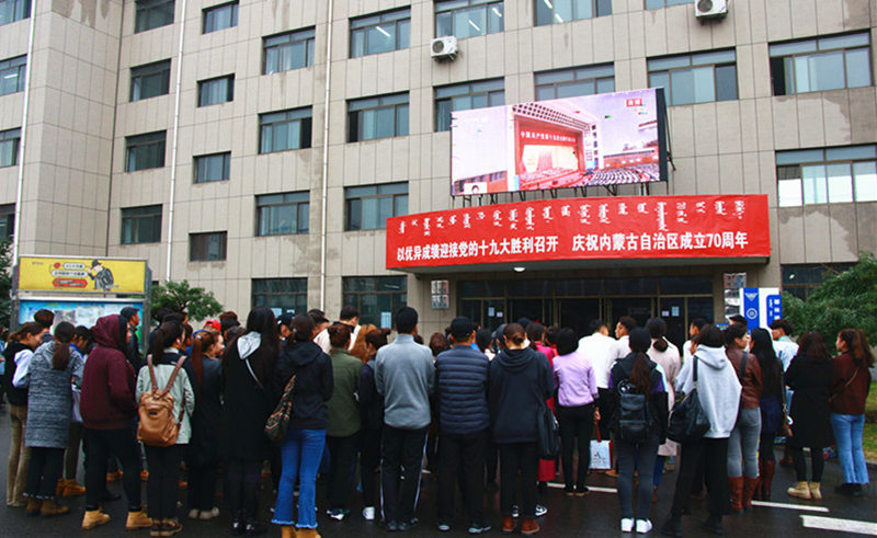此外,没有课的师生通过自主观看、集中观看等形式聆听了会议专题报告。部分缺乏观看条件的学生,集中在学校都林楼LED前进行观看学习。