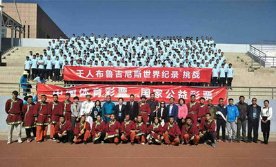 9月24日上午,由内蒙古自治区体育局主办、内蒙古健身气功协会承办、包头市职业技术学院协办的千人布鲁吉尼斯世界纪录挑战赛在包头市职业技术学院举行。本次挑战赛也是内蒙古自治区“两博”会期间的一项重要活动,共1091人投掷布鲁挑战吉尼斯世界记录。