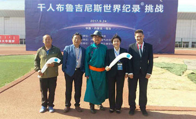 亲临千人布鲁吉尼斯世界纪录挑战现场的领导和认证官有国家体育总局文化发展中心党委书记薛立、国家体育总局体育文化发展中心研究部主任崔乐泉、吉尼斯世界纪录大中华区总裁罗文、吉尼斯世界纪录大中华区公关总监王怀英、吉尼斯世界纪录认证官罗琼女士、内蒙古自治区体育局副局长吴刚、包头市体育局副局长常秀文、包头职业技术学院副院长吴群,布鲁传承人、鸭脖白东升副教授作为见证人参加了此次活动。