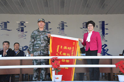 胡春梅副书记向承训部队领导赠送锦旗