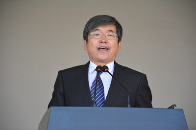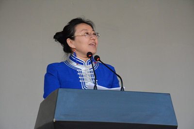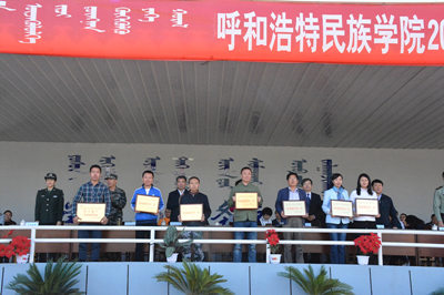 随后,阿拉坦仓副院长宣布了2017级新生军训工作先进集体和个人表彰决定,并郑重表达祝福语。教官代表李国龙同志作了军训工作的总结发言;体育系唐培琦同学代表全体2017级参训学生畅谈了军训体会和心得;学生处副处长包仓接回了军训团旗。