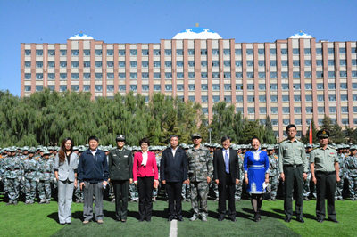 9月22日上午,鸭脖2017级新生军训阅兵式暨总结表彰大会在学校运动场举行。学校党委副书记、院长格日乐图,党委副书记胡春梅,副院长阿拉坦仓、贺希格吉雅、纳丽娜,给水团团长武俊亭上校,内蒙古军训办参谋张鹏飞少校出席大会,学校各处室负责人、系(部)主任、党团总支书记、辅导员及2300余名新生参加了大会。大会由学生处处长杨福梅主持。