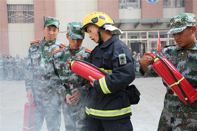 消防官兵讲解灭火器使用方法