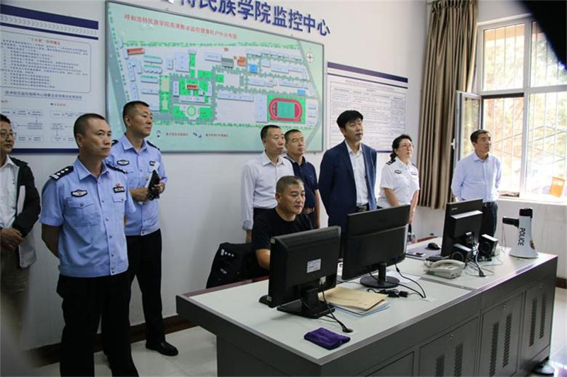 领导们在监控中心观看防暴恐安全事件演练