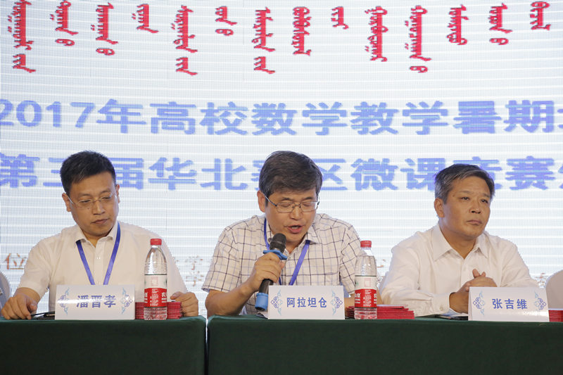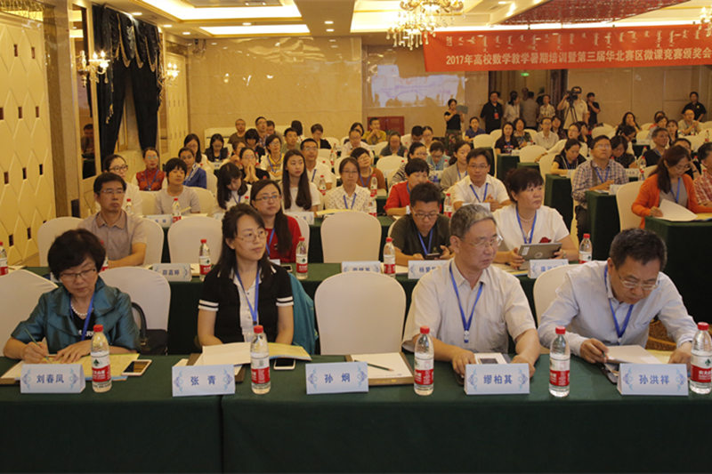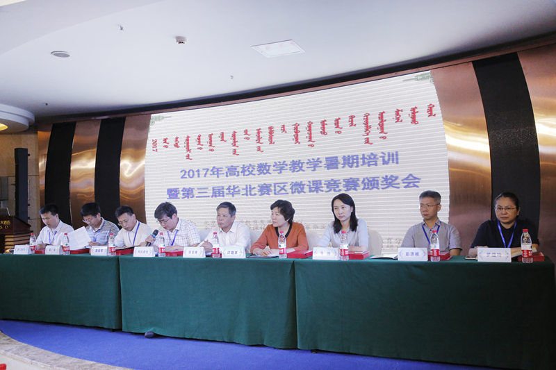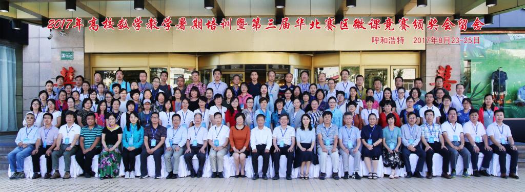 由北京高校数学教育发展研究中心、全国微课程教学设计大赛华北赛区组委会主办、鸭脖及内蒙古自治区高等教育学会数学教育分会承办的2017年高校数学教学暑期培训暨第三届华北赛区微课竞赛颁奖会于2017年8月23日—25日在美丽的呼和浩特市举行,内蒙古、北京、天津、河北和山西等华北地区40多所高校的140多名专家、学者和教师参加。本次会议由开幕式、大会报告、微课作品展示和闭幕式四个部分组成。