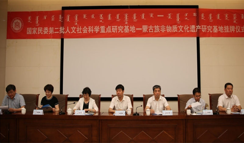 2017年6月29日上午,学校在图书馆一楼报告厅隆重召开国家民委人文社会科学重点研究基地--蒙古族非物质文化遗产研究基地挂牌仪式。国家民委教育科技司综合(科技)处处长安燕、国家民委教育科技司民族语文处处长王学荣,学校党委书记孙国权、院长格日乐图、党委副书记胡春梅、副院长贺希格吉雅出席挂牌仪式,仪式由阿拉坦仓副院长主持。