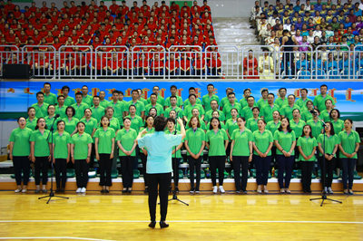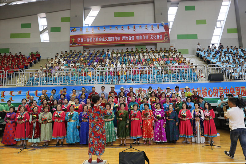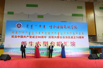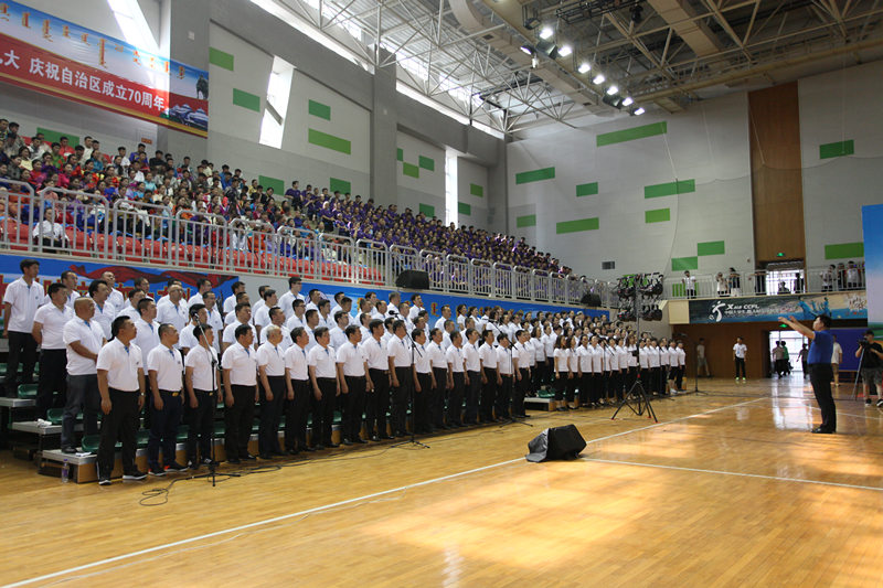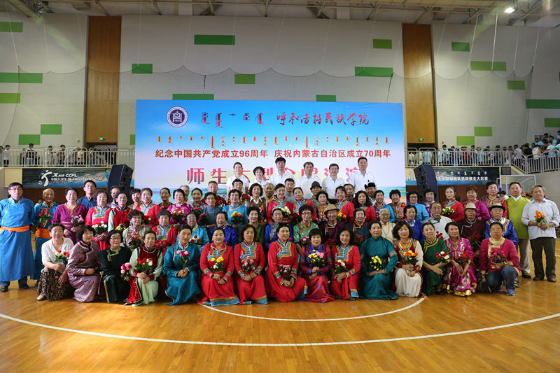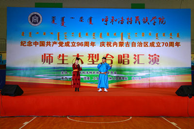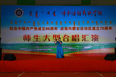 为纪念中国共产党成立96周年和内蒙古自治区成立70周年,以优异成绩迎接党的十九大胜利召开,根据学校《纪念自治区成立70周年活动方案》和《“两学一做”学习教育常态化制度化实施方案》,2017年6月30日下午,鸭脖在体育馆三楼室内篮球馆举办了以“纪念中国共产党成立96周年庆祝内蒙古自治区成立70周年”为主题的师生大型合唱汇演。全校职能部门、各系部师生代表共2000多人参加演出。