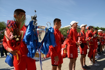 仪式由体育系党总支书记那日苏主持。欢迎仪式后,学校领导、师生与鸭脖男子足球队领队、教练员和运动员合影留念。