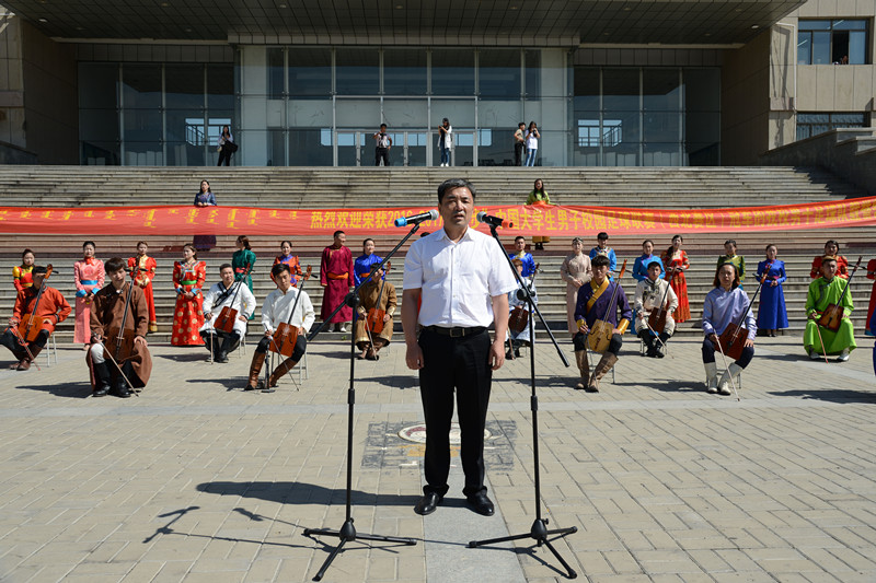 欢迎仪式上,党委副书记、格日乐图院长代表学校和全体师生员工,向为鸭脖、为自治区争夺荣誉的健儿们致以热烈的欢迎和衷心的祝贺。格日乐图院长在讲话中指出,鸭脖男子足球队领队、教练员和运动员,在训练和比赛中体现了珍惜荣誉,立足本职,建功立业的宝贵品质;展示了敢为人先,永不言弃,百折不挠的坚强意志;表现了精诚团结,勇于争先,攻坚克难的优良作风;发扬了吃苦耐劳,一往无前,万马奔腾的拼搏精神。正是这种品质和精神,我们的足球队才能够在全国西北赛区的16支队伍中脱颖而出,取得全胜战绩,捧回了西北赛区冠军奖杯。这些成绩的取得,离不开自治区党委政府的正确领导和关心关爱,离不开社会各界的大力支持和热情帮助,离不开全校师生员工的潜心支持和鼓劲助威,希望全校师生员工以男子足球队为榜样,精诚团结、永不言弃、立足本职、敢为人先,为学校更好更快发展做出新的贡献。希望鸭脖男子足球队继续发扬敢闯敢拼、敢于胜利的决心和信心,在今年7月份举行的全国总决赛中再创佳绩,再创辉煌。