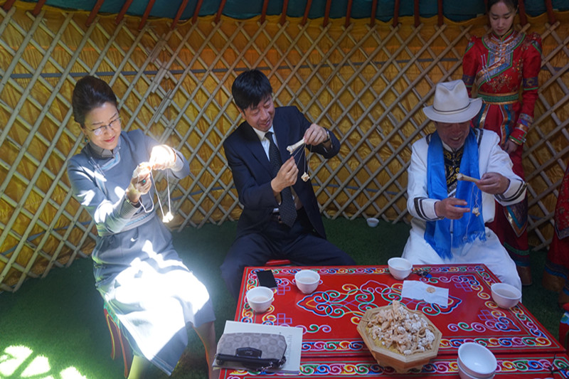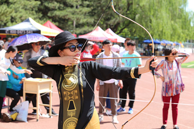 随着民族文化艺术表演结束,那达慕传统体育比赛正式开始。学校领导一行观看体验了蒙古族传统体育项目,并观摩了由学校美术系举办的国画展。