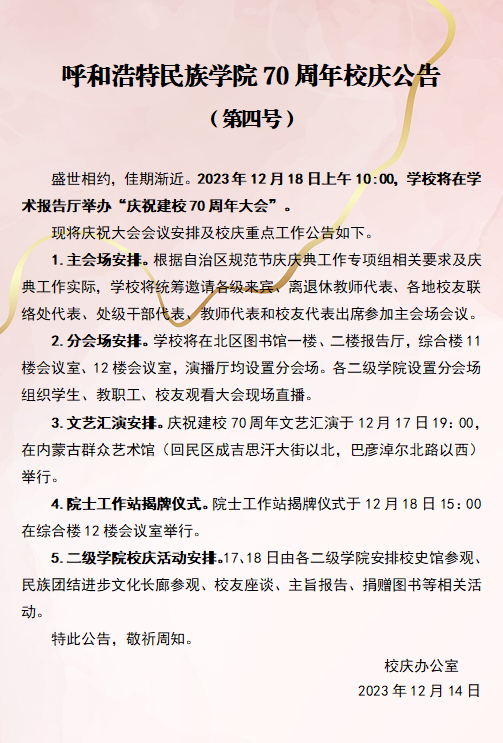 来源: 校庆办公室 发布时间:2023-12-14 浏览量: