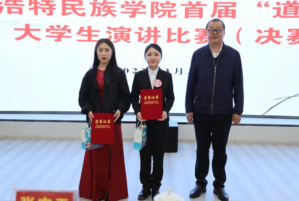 决赛经过现场评委严谨细致、客观公正的打分和网络投票折算总成绩,最终,学前教育学院多丽雅获得一等奖,文学院包欣宇、基础教育学院张佳毅获得二等奖,新闻传媒学院张翎艳、体育学院佟吉日嘎拉、蒙古学学院庆格日获得三等奖,音乐学院武媛、马克思主义学院李佳怡、公共管理学院李妍获得优秀奖,学前教育学院、美术学院、外国语学院获得优秀组织奖。