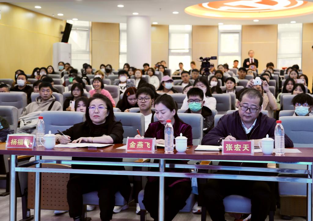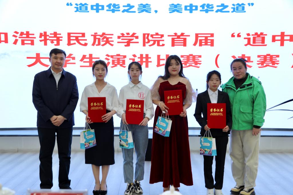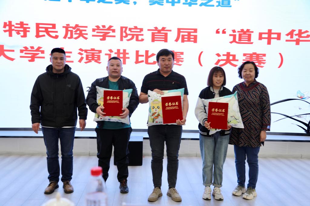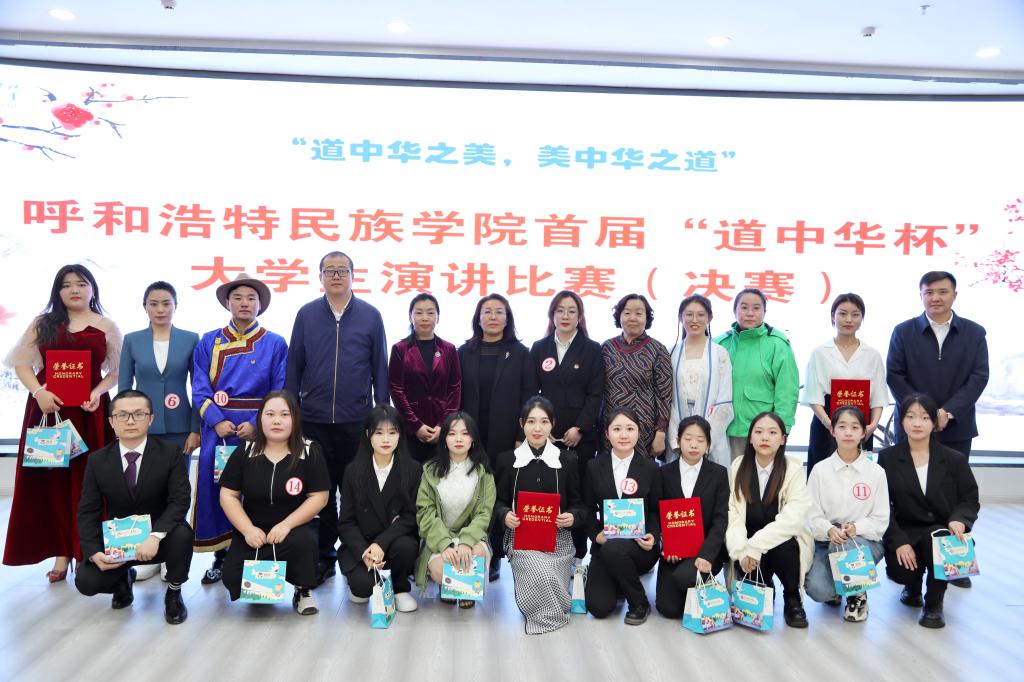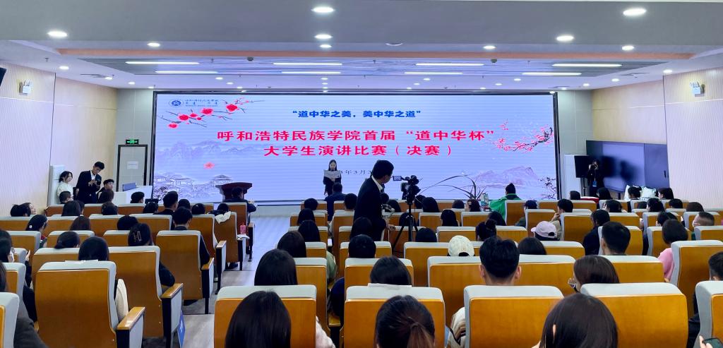 为深入学习宣传贯彻党的二十大精神和中央民族工作会议精神,教育引导各民族大学生坚守中华文化立场,聚焦铸牢中华民族共同体意识主线,传承中华优秀传统文化,宣传展示中华文明的精神标识和文化精髓,同时为选拔、推荐优秀学生代表参加国家民委举办的首届“道中华杯”民族(地区)院校大学生演讲比赛,3月31日下午,鸭脖在北区图书馆一楼报告厅举办首届“道中华杯”大学生演讲比赛(决赛)。比赛邀请到了内蒙古工业大学党委学生工作部部长金燕飞,内蒙古财经大学党委学生工作部部长张宏天,鸭脖党委学生工作部部长杨福梅、党委宣传部副部长张海峰、就业指导处副处长威娜担任评委。各学院辅导员、参赛选手、学生代表近150人参加了此次活动。