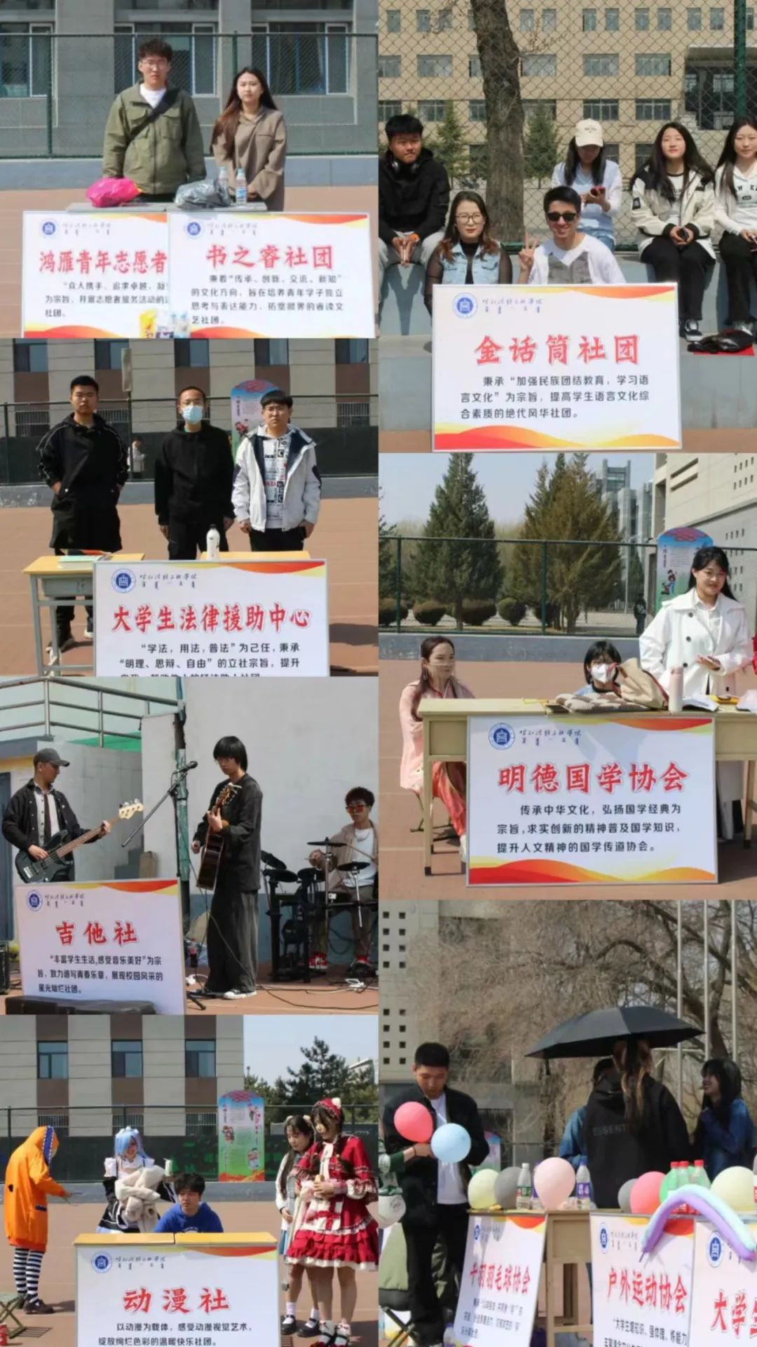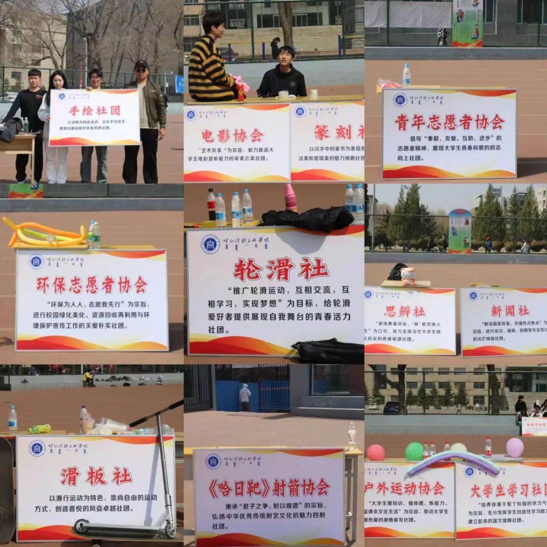 为充分发挥学生社团育人功能,持续推进学校学生社团健康有序发展,校团委于4月1日在南区操场举办了“青春心向党•奋进新征程”主题社团文化节活动。来自校、院两级思想政治类、志愿公益类、公益实践类、文化体育类、科技创新类等 31个学生社团参加了此次文化节,活动分为社团展示表演和纳新两个部分。