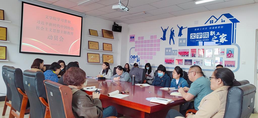 根据学校党委关于认真开展学习贯彻习近平新时代中国特色社会主义思想主题教育的安排部署,文学院党总支于4月20日下午在尚智楼115会议室召开学习贯彻习近平新时代中国特色社会主义思想主题教育动员会暨第一次学习会。会议由学院党总支书记李宏亮同志主持,全体师生党员参加。