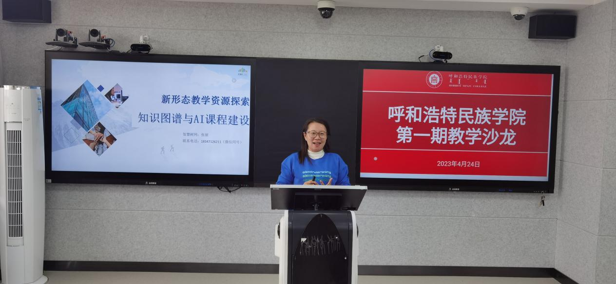 为了持续提高教育教学质量,推进一流本科课程建设工作,教务处于4月24日下午在尚智楼623智慧教室举办了2023年第一期教学沙龙活动。本次沙龙由教务处处长额尔敦布和主持,智慧树课程顾问张丽老师和各学院院长、副院长及课程负责人60余人参加。