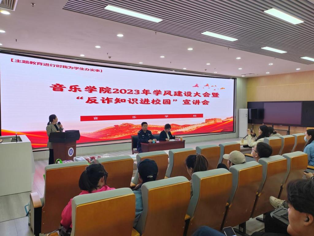5月11日,音乐学院在图书馆一楼报告厅召开了“反诈知识进校园”宣讲会。会议特邀请呼和浩特市公安局反诈中心三级警长张巍警官给同学们讲授反诈知识。学院党总支书记格日乐、全体辅导员、2021和2022级全体同学参加宣讲会。