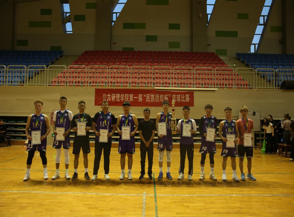 为丰富学生校园文化生活,提高学生身体素质,加强各年级同学凝聚力,公共管理学院举办了为期一周的学院首届“民族团结杯”篮球赛。经过激烈角逐,总决赛于5月14日在体育馆篮球场举行。