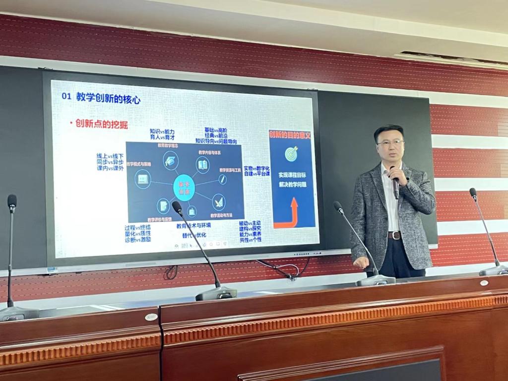 随后,额尔敦布和教授以“浅谈高校教学创新的核心要素”为主题,从自治区比赛评审专家的视角,从教学创新的核心、课程目标的凝练、内容与价值的升华、认知目标的深度交互、有效教学评价的开展等五个方面为大家解读分享经验和思考心得。
