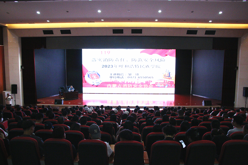 本次消防知识培训首先在北图书馆二楼报告厅举办,由内蒙古消防安全协会会长邹顺主讲,多方位多角度讲解了消防安全法规、火灾案例、火灾预防知识等,并强调了防火防灾的重要性。讲座结束后,在2号学生宿舍楼进行了消防应急逃生演练,师生通过安全通道有序撤离到指定位置,现场秩序井然,行动迅速。演练结束后,组织开展了灭火器的演练。