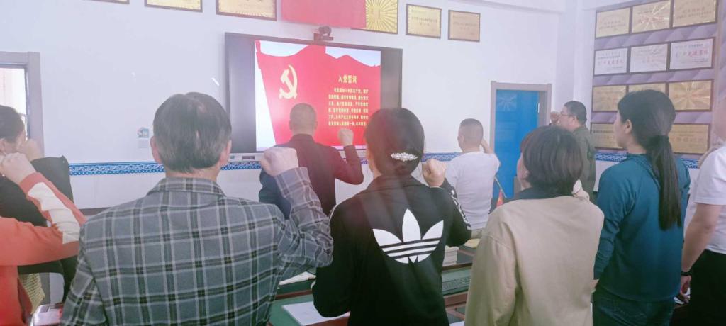 主题党日活动在庄严肃穆的国歌声中拉开序幕。实验小学副校长带领全体师生党员重温入党誓词,她强调中共党员应时刻用入党誓词激励自己,不断提高对共产党事业的责任感和自觉性,以实际行动践行入党誓词。