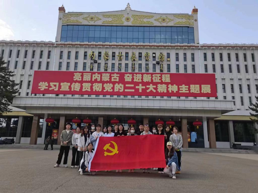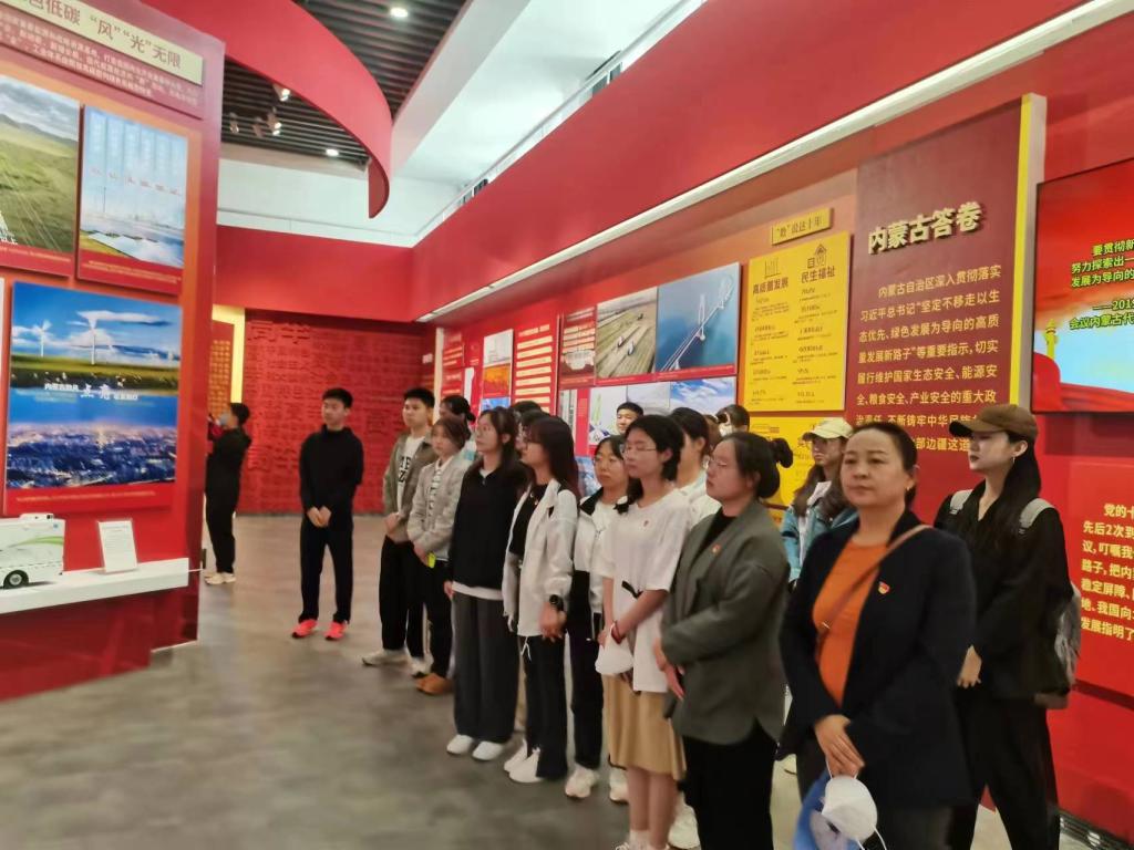 本次活动主要观看了内蒙古自治区展览馆“亮丽内蒙古奋进新征程一一学习贯彻党的二十大精神”主题展。本次主题展览包括“新时代伟大成就”“高举伟大旗帜”“创造新的伟业”三个单元。展览紧紧围绕党的二十大主题,运用影像视频、展品模型、场景演示、多媒体查询等要素,通过直观,形象、生动的形式,展示了新时代十年的伟大变革,阐释了习近平新时代中国特色社会主义思想的世界观方法论和新时代新征程党的使命任务,解读了全面建设社会主义现代化国家的目标任务和重大决策部署,为广大党员干部群众提供了深入学习党的二十大精神的生动教材。