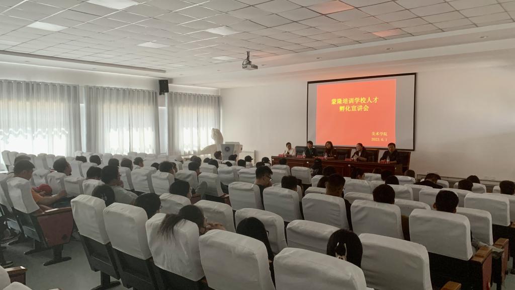 为深入开展学习贯彻习近平新时代中国特色社会主义思想主题教育,扎实推进我院就业工作,6月1日下午美术学院邀请内蒙古蒙隆培训学校校长白银花和教学负责人刘瑞红在美术楼四楼阶梯教室为2023届毕业生举办了人才孵化专场宣讲会。美术学院2019级在校毕业生80余人听取了宣讲会。