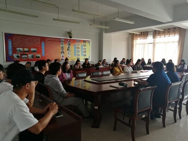 2017年9月15日上午10时30分,外语系在系会议室组织召开了2014级考研学生座谈会。会议由外语系肖查娜主任主持,外语系党总支书记布和朝鲁、外语系2014级考研班班主任高乌兰老师、外语系2014级考研学生近50人参加了会议。
