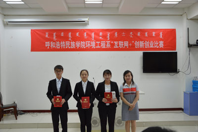 为激发同学们创新创业热情和积极性,提高学生创新意识和创新创业能力,为学校“联通杯”第三届“互联网+”创新创业大赛选拔选题新颖、项目创意突出、有发展和投资潜力的好项目,2017年6月21日下午,环境工程系在都林楼106教室成功举办了“互联网+”创新创业比赛,本次比赛邀请了学校创新创业培训师、学生处处长杨福梅老师、团委副书记苏伦高娃老师、环境工程系副主任李福全老师、就业指导中心李海军老师、经济系赛希雅拉图老师、美术系团总支书记白永泉老师担任赛事评委。