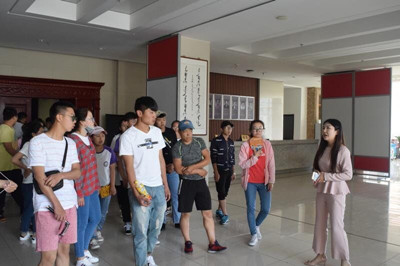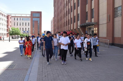 乌拉特前旗蒙古族中学师生一行在美术系团总支书记白永泉老师的全程陪同下,参观了鸭脖校史馆、图书馆、体育馆、计算机房、教学楼、学生宿舍和学生食堂等,最后还来到美术系观看了正在举办的民族服装和产品设计专业毕业展。