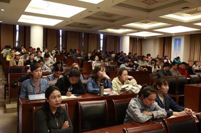 温总监首先从介绍认识新媒体出版物入手,着重以技术的角度展示致力于不同目标和人群所研发的具体应用和实际功效。随后,对新媒体出版物的开发策划以及设计理念进行了演绎和宣传,耐心讲解了方正设计软件的使用技巧和历届新媒体创意大赛的有关成果,并就即将开始的新一届设计比赛向在场的同学们发出了热情邀请。同时,温总监希望我系学生积极参与相关专业领域的社会角逐,早日奉上蒙古族大学生的新媒体创意作品,为民族文化的推介与发扬做出应有的努力。