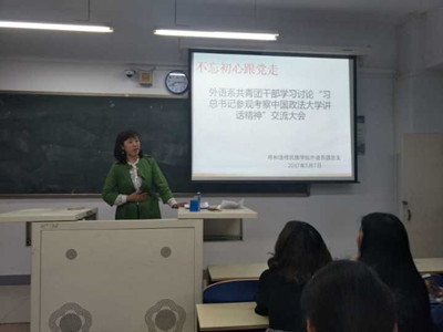 5月7日晚8时,外语系团总支在都林楼614室开展“不忘初心跟党走”学习讨论习近平总书记视察中国政法大学讲话精神大会。外语系团总支负责人王春梅、外语系共青团干部参加了此次会议。