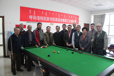 为丰富离退休老干部的文化娱乐活动,4月28日,离退休人员管理处组织了迎“五一”老干部台球比赛,共20余名老干部台球爱好者参加了比赛。比赛实行三局两胜制,经过两天的激烈角逐,最终,乌云毕力格获得第一名,鲁来尼玛获得第二名,魏庭欢获得第三名。