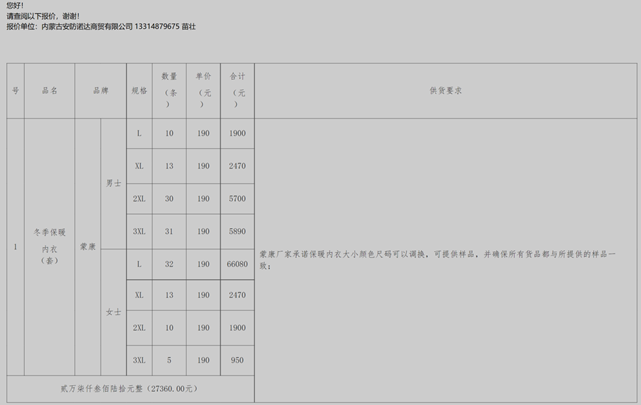 YABO鸭脖防疫应急物资(冬季保暖内衣)项目成交公告