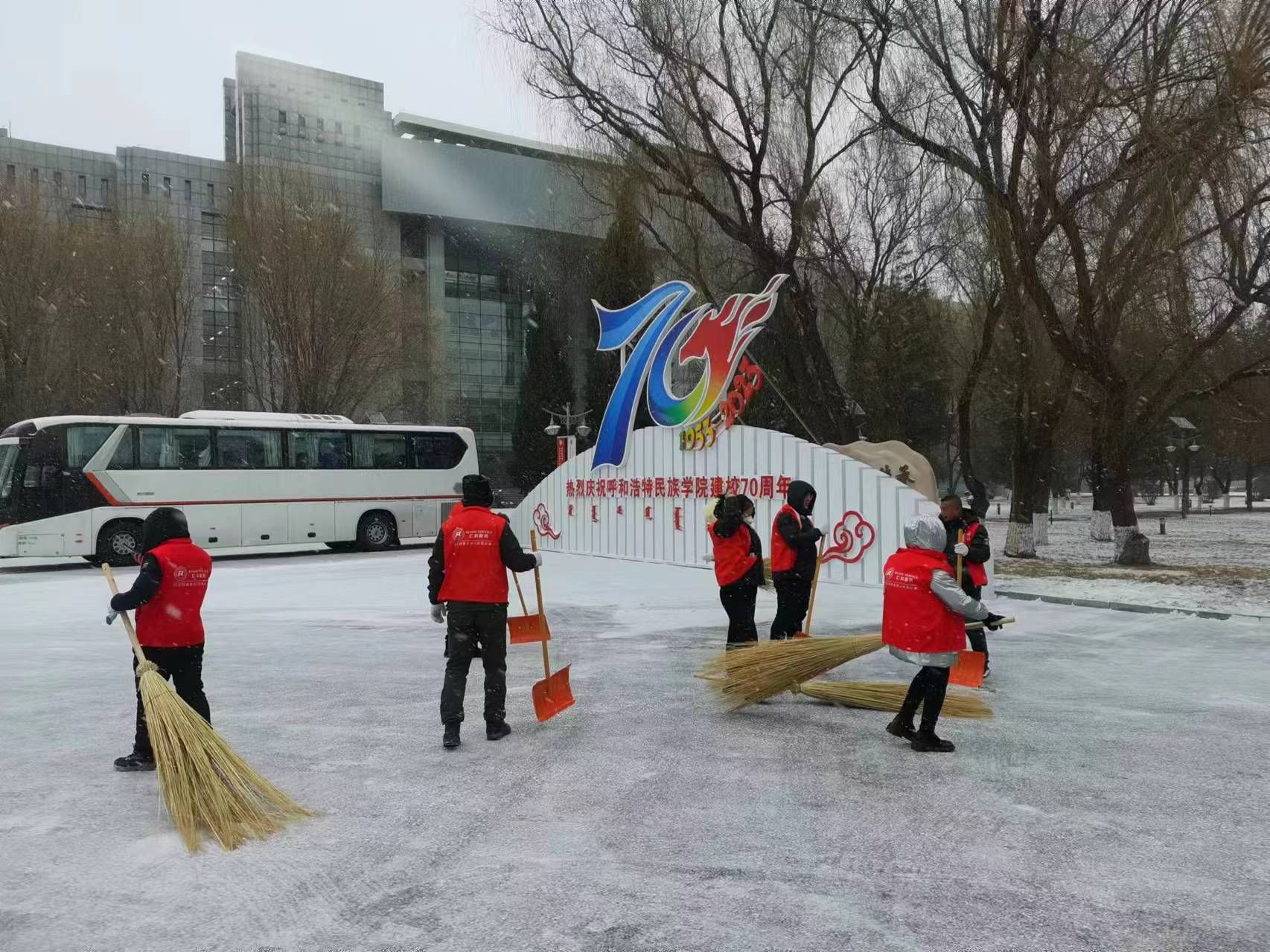物业管理工作组工作人员对各自所辖区域内垃圾桶、垃圾房及垃圾中转站等公共场所全面打扫,及时清洁主会场、分会场、办公区域、教室和学生公寓公共区域卫生,维修更新垃圾桶、果皮箱、地砖和墙砖等设施,确保卫生环境无死角,设施设备无破损。仁和物业公司增加员工紧锣密鼓的布置会场,加快清扫道路积雪结冰频率,确保校区主干道无积雪无结冰。