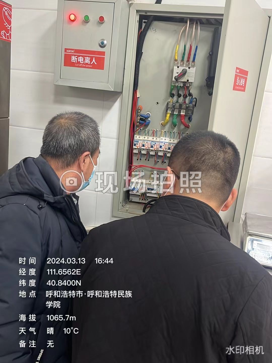 燃气辖区管理员和技术人员分别从天然气计量设备设施、管道设备附件和安防报警系统进行细致检查。学校水电维修科工作人员对食堂用电线路和用电设备进行了安全排查,确保食堂内燃气、电器、电路的安全使用。