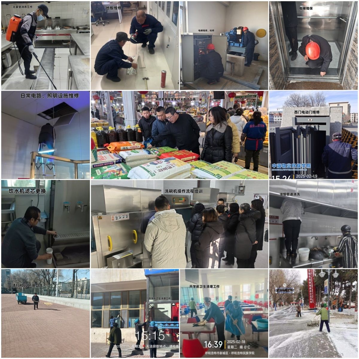 寒假期间,后勤管理处各科室明确责任分工、紧密配合,确保开学前各项准备工作扎实推进。在开学来临之际,确保以整洁、美丽、安全和谐的校园环境迎接新学期的到来。
