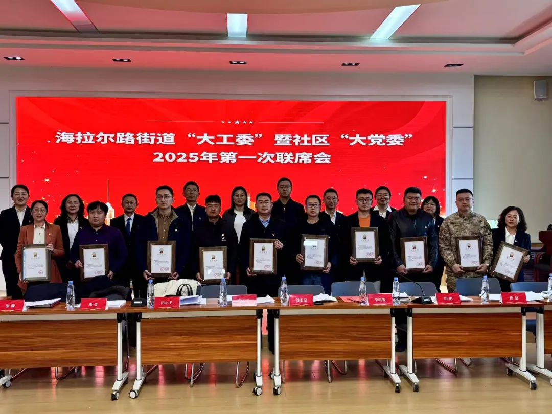 2月25日,海拉尔路街道召开街道“大工委”、社区“大党委”2025年第一次联席会议,会上表彰了鸭脖党委、公安厅机关党委等21家优秀成员单位。