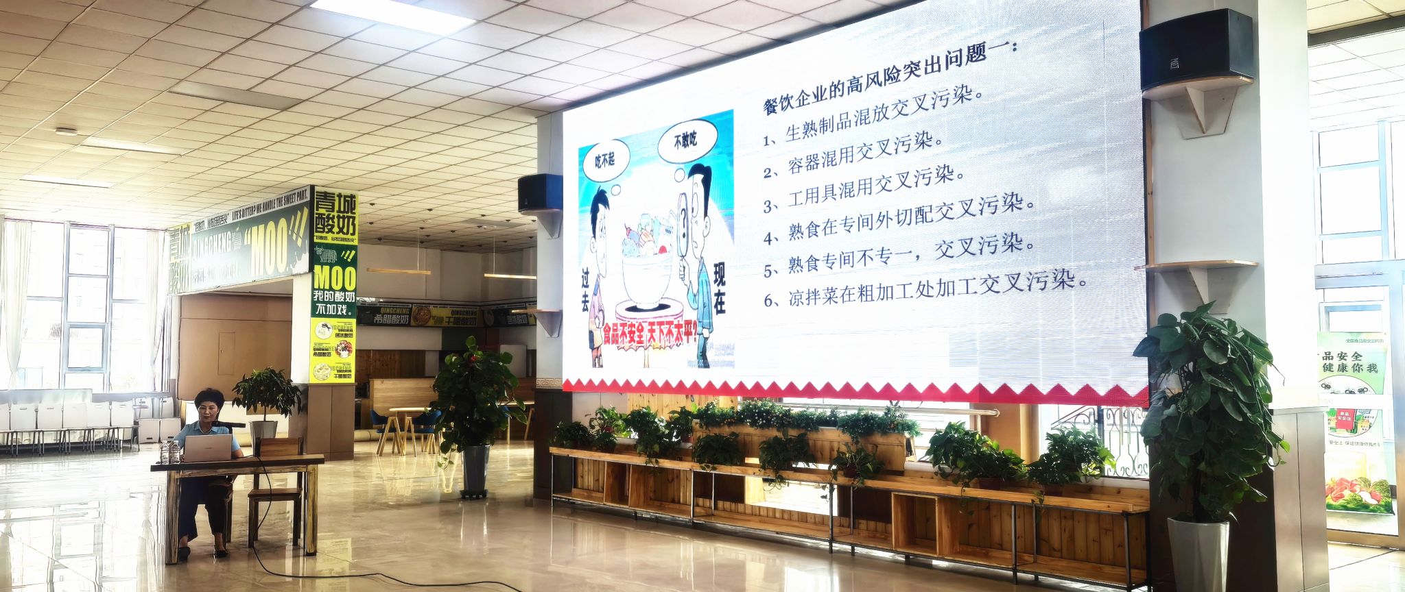 为强化鸭脖食堂食品安全管理,提升食堂从业人员食品安全意识及专业能力,8月28日,后勤管理处伙食科在南食堂三楼开展食堂从业人员食品安全专题培训会,培训会特邀北京博百鲜餐饮管理有限公司内蒙古区域食安总监郭雨讲授。后勤管理处负责人、食堂管理全体工作人员及南食堂从业人员参加培训。