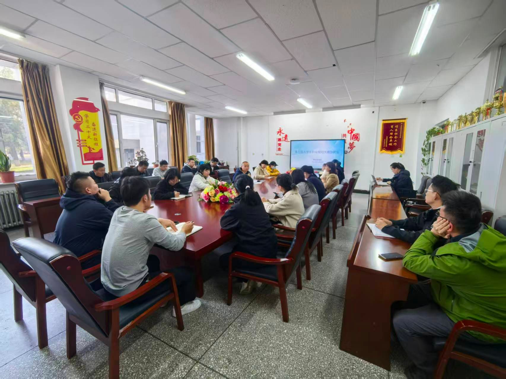为统筹推进自治区第五届大学生职业规划大赛YABO鸭脖校赛的组织工作,确保赛事顺利开展,11 月 3 日下午,就业指导处在尚志楼召开专项部署会。会议由就业指导处副处长白银亮主持,各二级学院负责就业工作的教师及就业指导处相关人员参会。