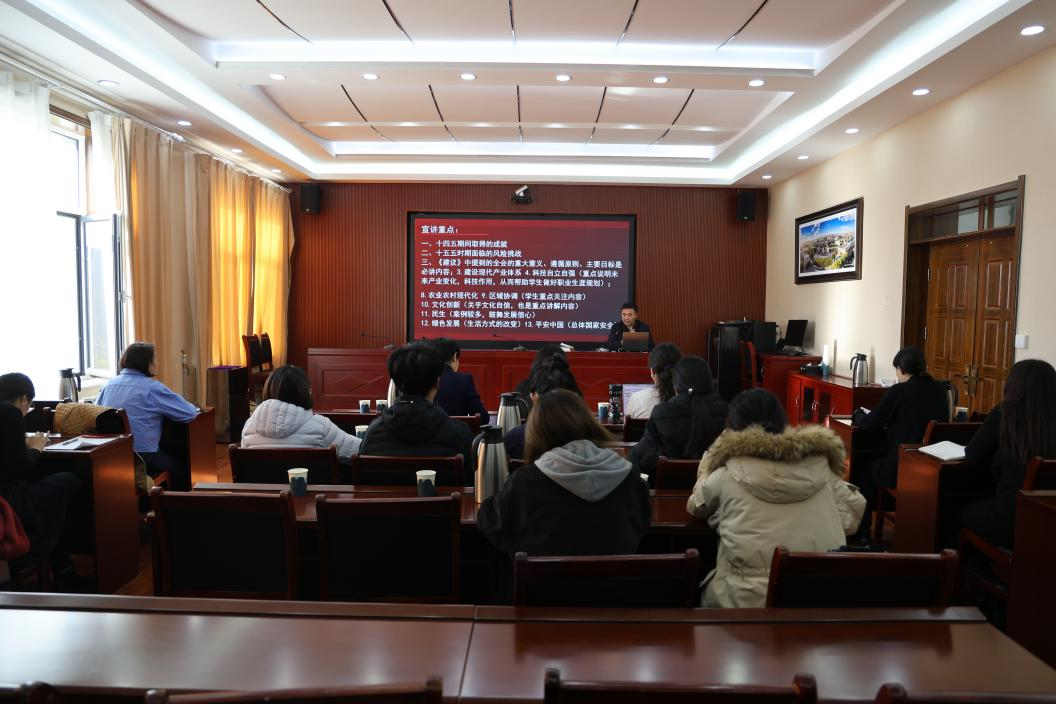 为深入学习宣传贯彻党的二十届四中全会精神,全面贯彻铸牢中华民族共同体意识工作主线,11月14日上午,在办公楼四楼会议室举办学习宣传贯彻党的二十届四中全会精神专题培训会。由校党委委员、宣传部部长张海峰主持,崇正宣讲团成员参加培训会。
