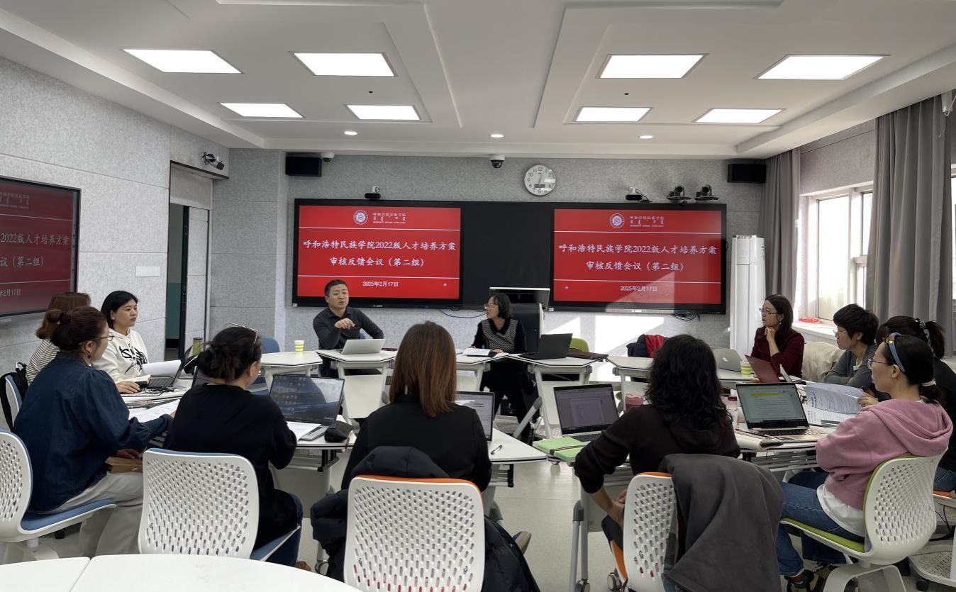 为进一步提升2022版人才培养方案修订质量,教务处在寒假期间聘请专家对43个本科专业的人才培养方案进行了审核,2月17日,在尚智楼6楼智慧教室召开2022版人才培养方案审核反馈会议。会议分四组在四个会场并行召开,人才培养方案审核专家、二级学院专业负责人、教务处全体工作人员出席会议。教务处处长肖查娜、教学评估与质量监测中心主任额日德木图、教务处副处长姚全福、乌兰分别主持各分会场会议。