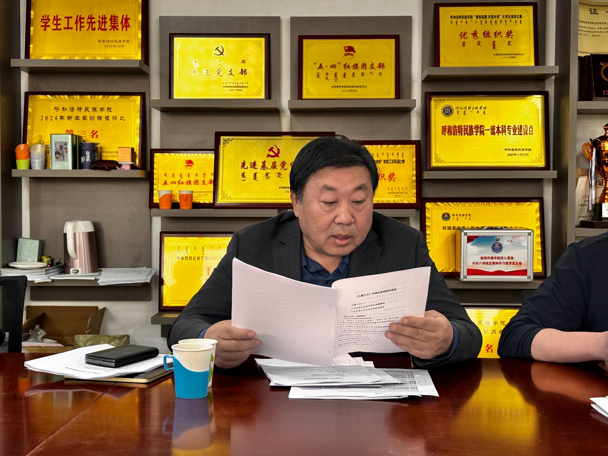 5月15日,新闻传媒学院在都林楼519会议室举办了聚焦北疆文化传播的学术讲座。内蒙古自治区人大科教文委副主任委员、内蒙古日报社原社长吴海龙受邀主讲,以《北疆文化传播实践理路和进路》为主题,结合北疆文化的基础认知、理论发展与传播实践,系统解析了其传播研究的现实背景、政策依据、实践理路与开展路径。讲座由新闻传媒学院院长额尔敦毕力格主持,新闻传媒学院30余名师生到场参与学习。