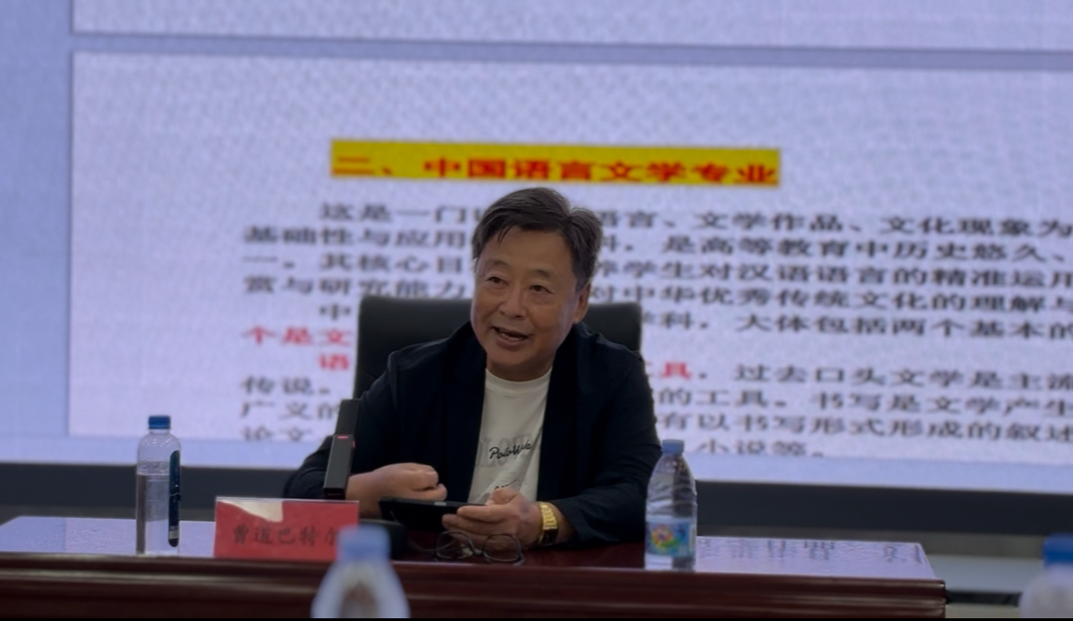 2025年9月4日下午,中国社会科学院民族学与人类学研究所研究员、博士生导师曹道巴特尔教授应邀来到鸭脖文学院,以《中国语言文学与北疆文化建设》为题目进行专题讲座。本次讲座由文学院院长高娃教授主持,全院师生共同参与。