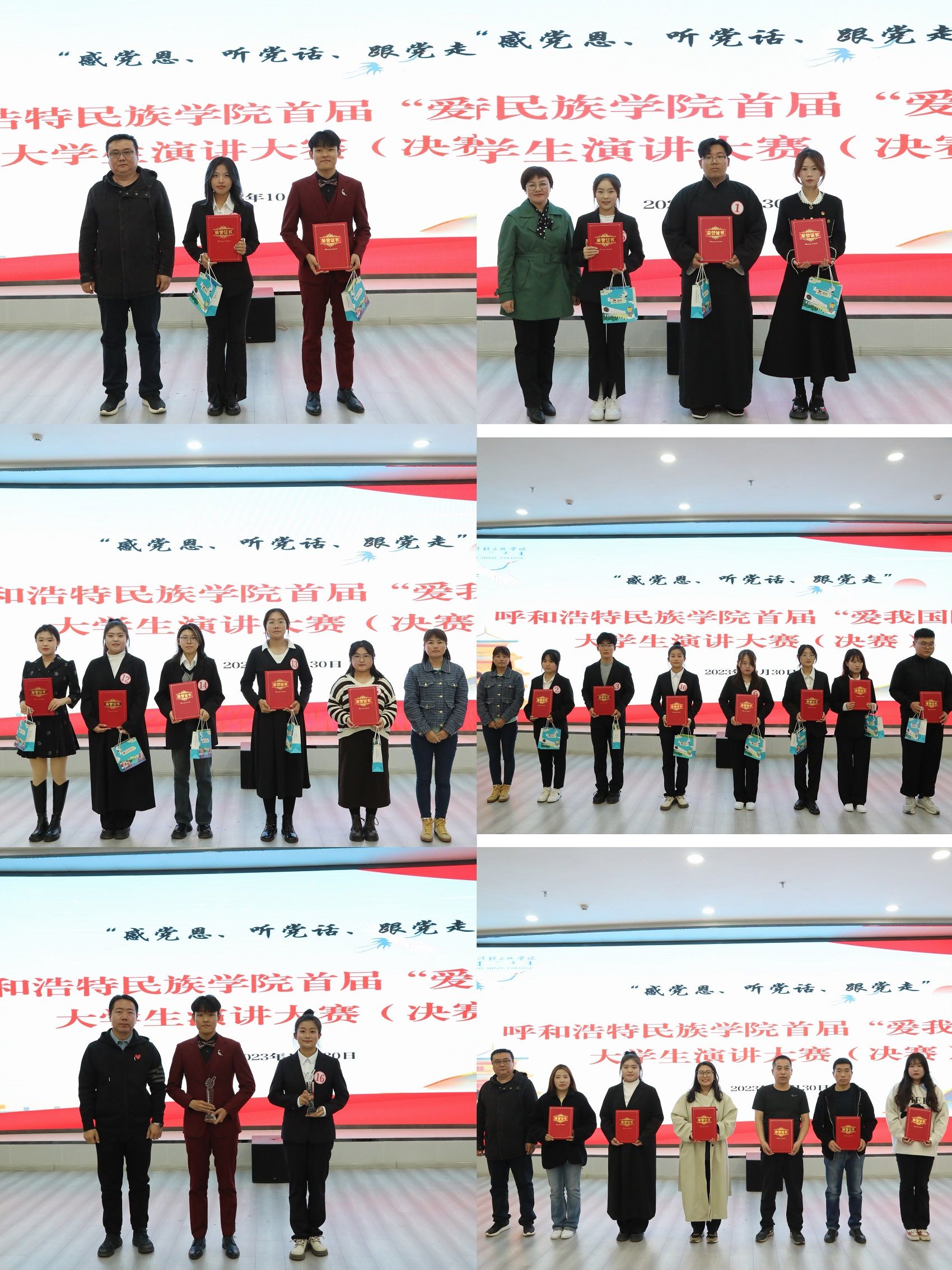 决赛经过现场评委严谨细致、客观公正的打分得出了总成绩。最终,文学院孙天琦、化学与环境学院郑雪同学获得一等奖,公共管理学院范兆启、音乐学院康瑞、经济管理学院郑璐璐同学获得二等奖,学前教育学院刘慧敏、新闻传媒学院董昱彤、马克思主义学院邬若敏、数学科学学院高敏、美术学院刘梦实同学获得三等奖,计算机科学学院陈佳慧、民族学学院鞠明杭、基础教育学院李欣洁、法学院夏富豪、体育学院李遇奇、外国语学院韩坤灵、蒙古学学院系艳丽同学获得优秀奖,文学院孙天琦、体育学院李遇奇同学获得最具人气奖,蒙古学学院等6个学院获得优秀组织单位奖,文学院刘晓等10名教师获得优秀指导教师奖。