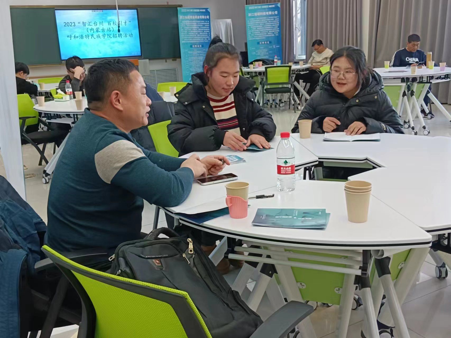 本次招聘会共组织台州市9家优质企业进校招聘,岗位涵盖化工、信息、酒店、商务英语等。会前,招生就业处和二级学院通过就业创业网、就业工作QQ群、微信群等及时发布信息,积极做好政策宣传和组织动员,共有30多名学生到场咨询,投递简历。