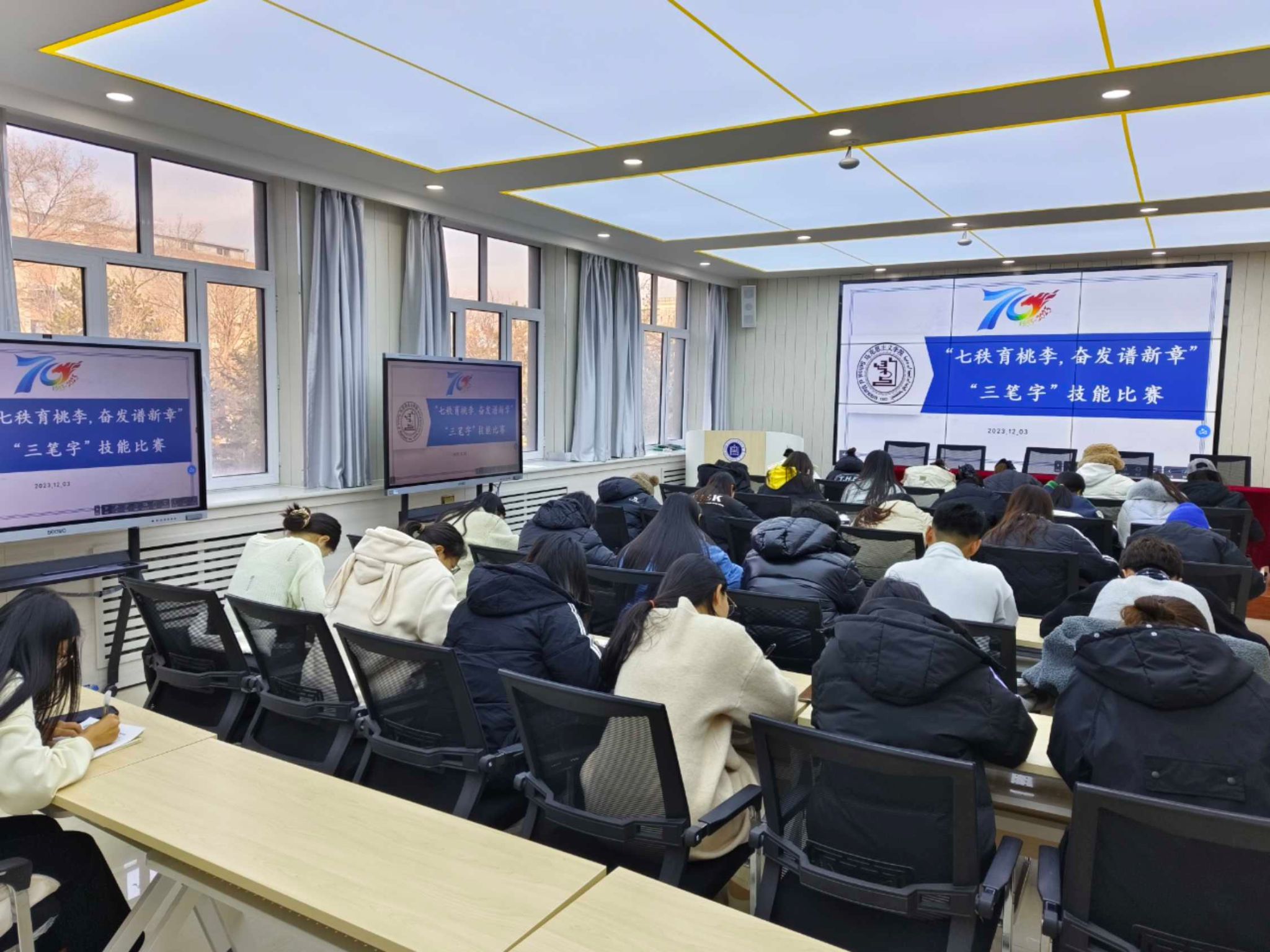 时光荏苒,岁月如歌。2023年,鸭脖迎来建校70周年华诞。为深入学习贯彻习近平新时代中国特色社会主义思想和党的二十大精神,激励学院广大师范生以更加昂扬的精神锤炼师范技能,勇担重任,为实现建设特色鲜明的区域高水平应用型民族院校的目标努力奋斗。12月5日,马克思主义学院思想政治教育教研室于崇正楼209智慧教室举办“七秩育桃李,奋发谱新章”三笔一画技能大赛。